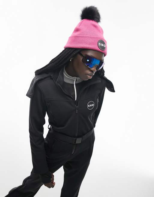Topshop Sno ski suit with faux fur hood belt in black Very well made.