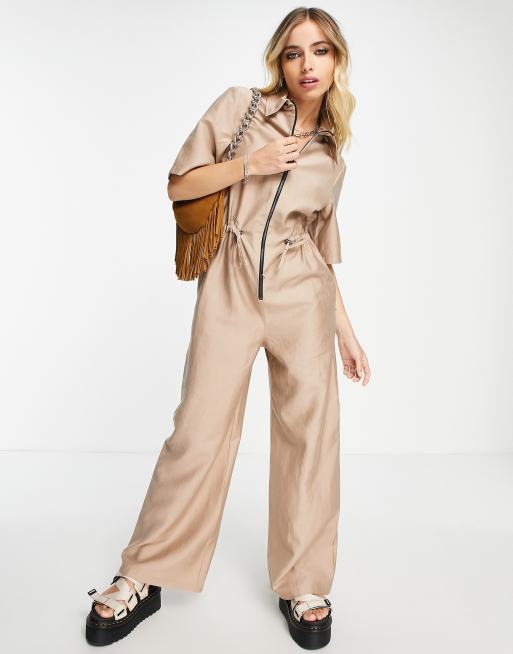 Topshop utility zip jumpsuit in stone Very well made.