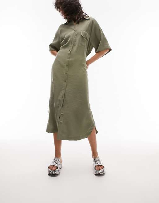 Topshop oversized topstitch midi shirtdress in khaki Very well made.