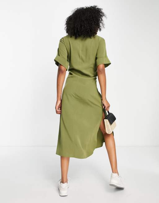 ASOS DESIGN cupro utility midi dress with draw string and pocket detail in sage Very well made.
