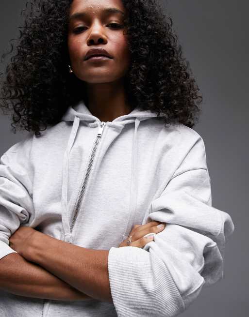 Topshop premium zip through hoodie in gray heather Very well made.