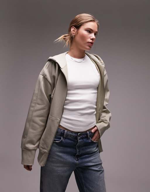Topshop premium zip through hoodie in sage ASOS Very well made.