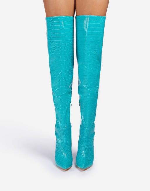 Turquoise Croc Print Block Heel Thigh High Boot Munroe Shoetique Very well made.