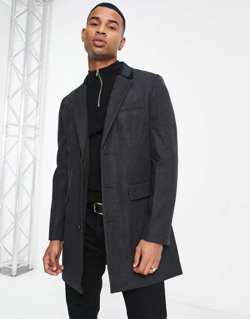 French Connection single breasted overcoat with velvet collar in charcoal Very well made.