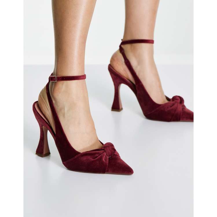 Burgundy Big Bow Sandals Heels Velvet Peep Toe Effortless Dress Shoes Very well made.