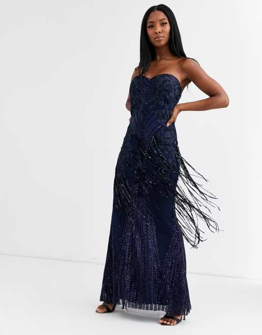 Goddiva Vestito lungo a fascia con frange e paillettes blu navy Very well made.