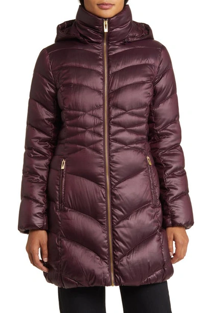 Quilted Puffer Jacket With Removable Hood In Burgundy Very well made.