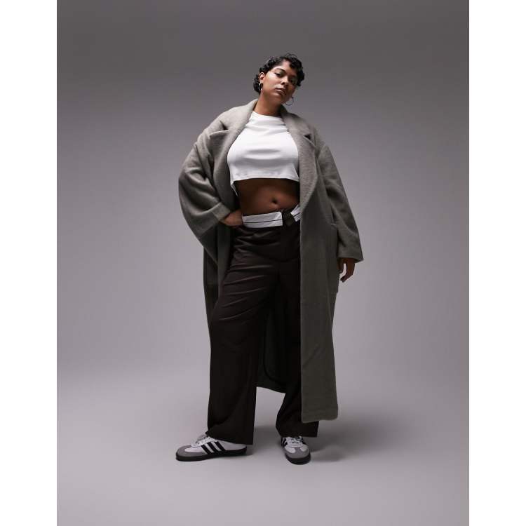 Topshop Curve brushed chuck on coat with patch pockets in moss green Very well made.
