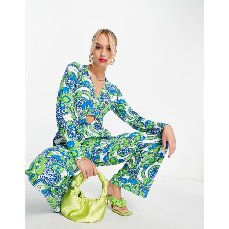 Never Fully Dressed heart cut out wide leg jumpsuit in swirl print Very well made.