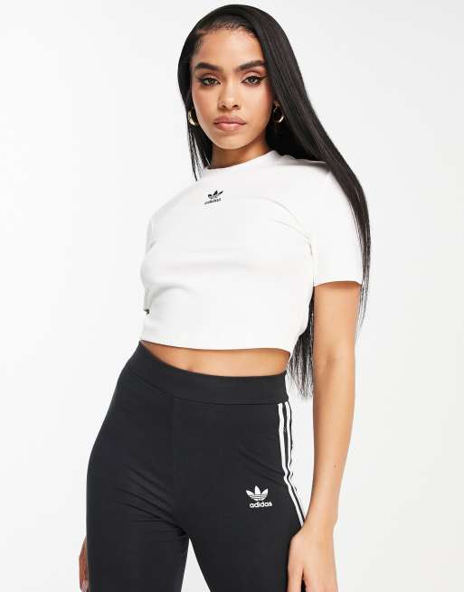 adidas Originals adicolor 3 stripe cropped top with v neck in white Very well made.