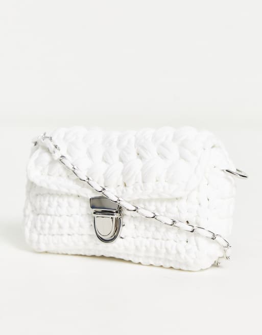 My Accessories London chunky woven crochet clutch bag in white Very well made.