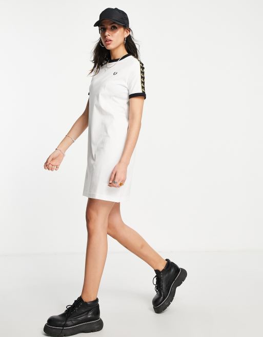 Fred Perry branded taped short sleeve t shirt dress in white ASOS Very well made.