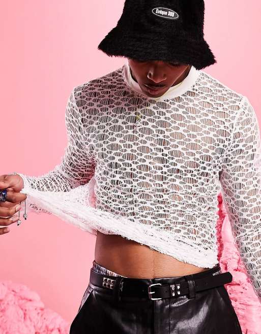 ASOS DESIGN skinny long sleeve T shirt in white lace mesh Very well made.