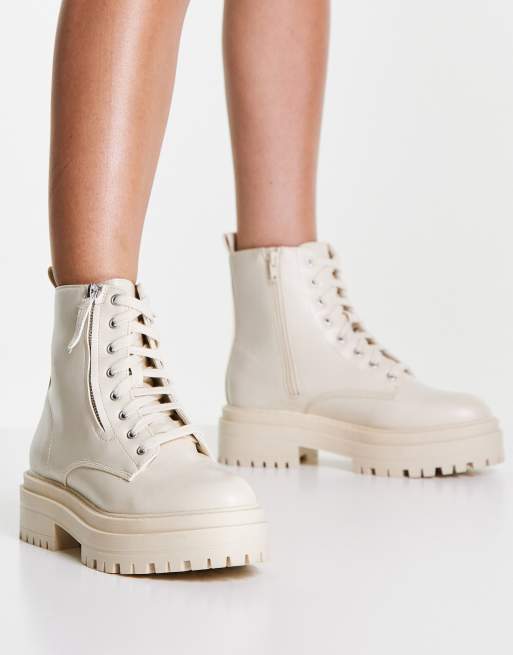 Cream Cleated Angled Chunky Sole Lace Up Ankle Boots Very well made.