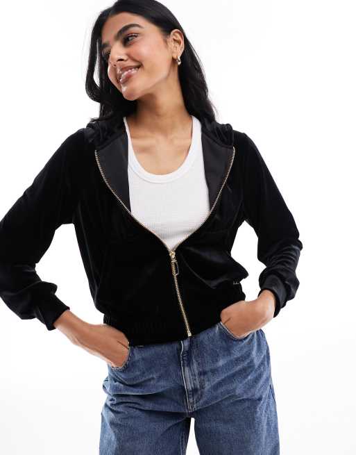 River Island Black Long Sleeve Velour Hoodie in Black Very well made.