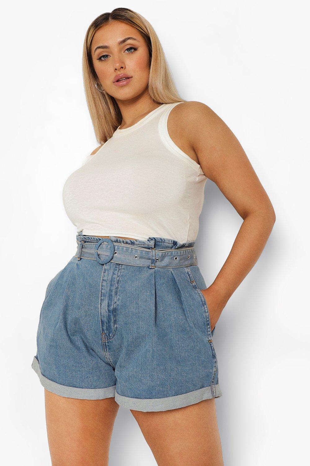 Plus Belted Paper Bag Denim Shorts Very well made.