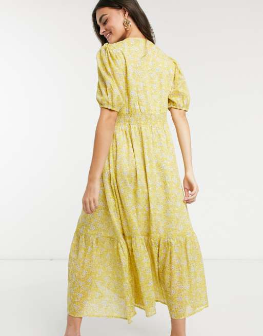 ASOS DESIGN button through pintuck maxi dress in yellow floral Very well made.