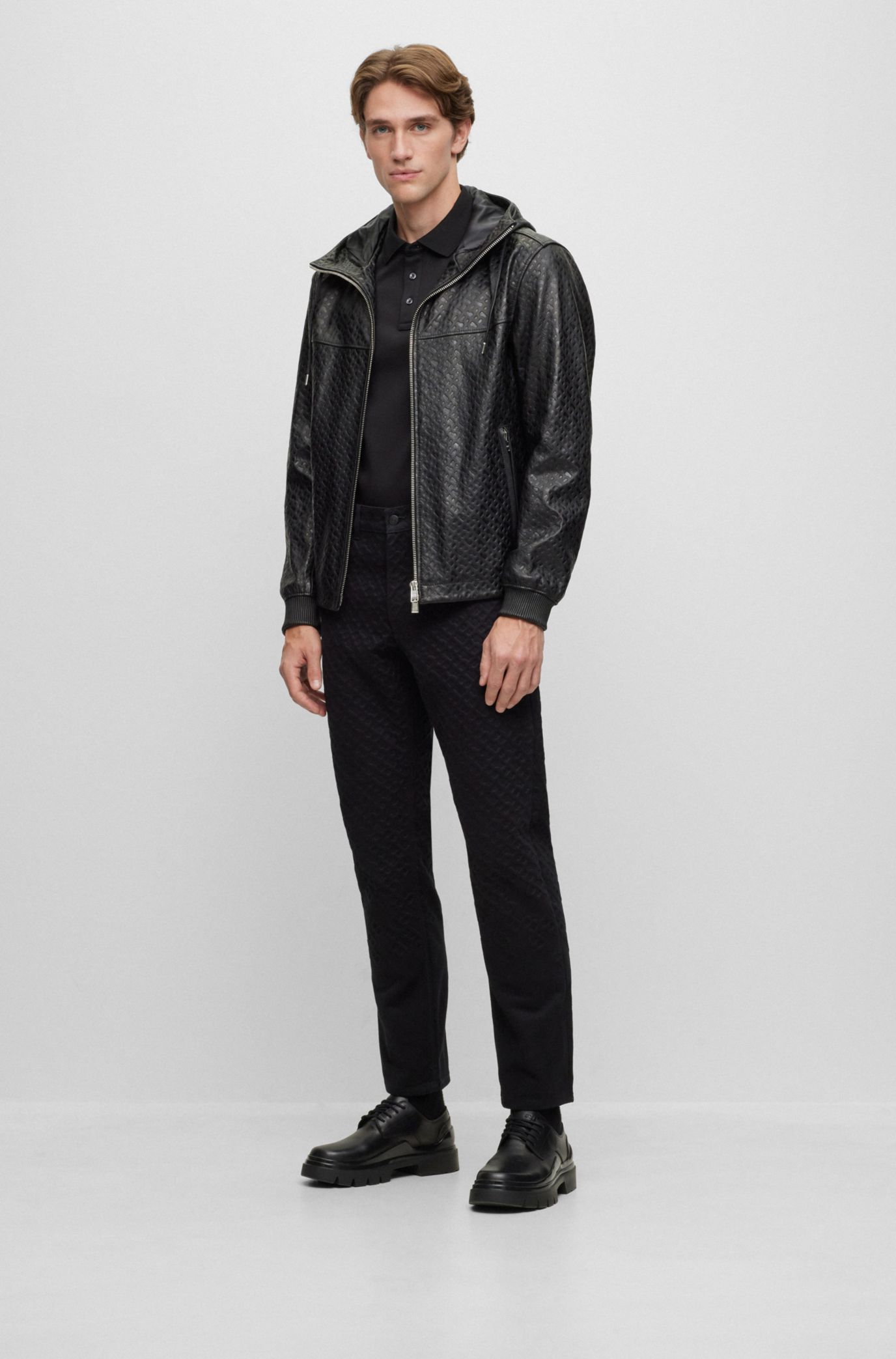 BOSS Hooded relaxed fit jacket in monogrammed leather Very well made.