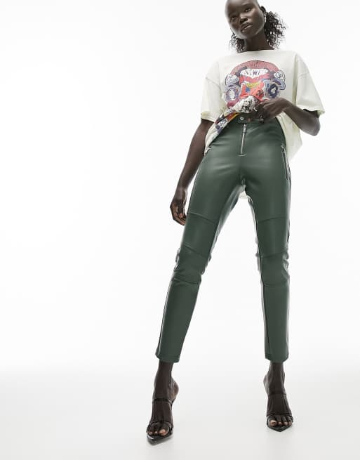 Topshop Petite faux leather skinny fit moto pants in khaki Very well made.