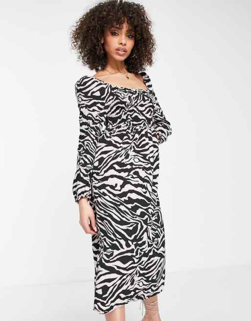 I Saw It First long sleeve ruched midi dress in zebra print ASOS Very well made.