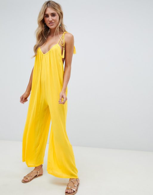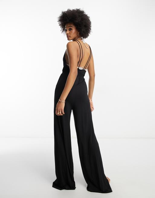 ASOS DESIGN Tall wide leg double strap beach jumpsuit in black Very well made.