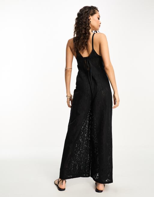 ASOS DESIGN Petite lace beach jumpsuit with cut out in black ASOS Very well made.