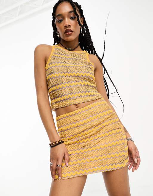 Only bodycon mini skirt co ord in yellow zig zag Very well made.