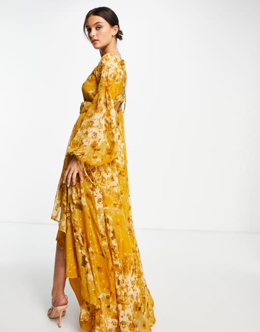 ASOS DESIGN high low maxi dress in textured chiffon floral print with belt and pintuck detail Very well made.