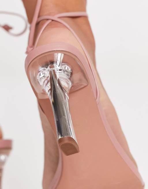 ASOS DESIGN Wide Fit Helsy tie leg mid heeled sandals in clear and Very well made.