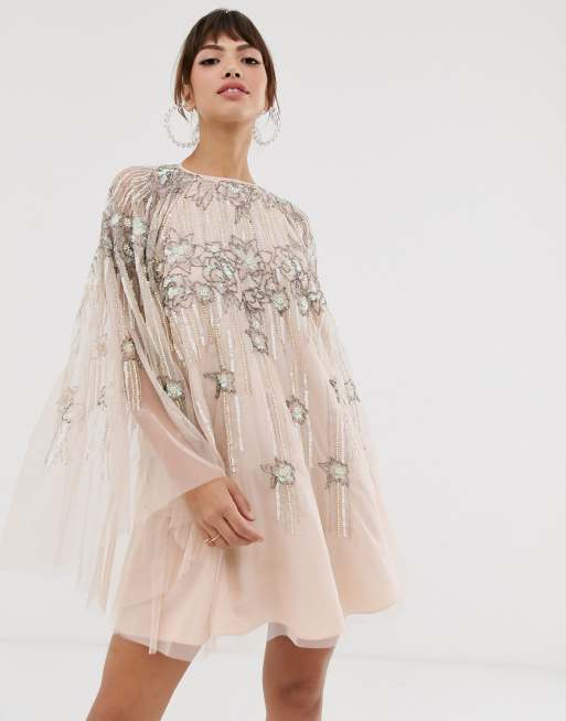 ASOS DESIGN cape mini dress in linear and floral pearl and sequin Very well made.