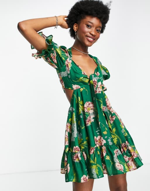 ASOS DESIGN tie front mini dress in textured voile in art noveau floral Very well made.