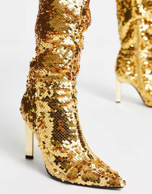 ASOS DESIGN Cancun knee high boots in gold Very well made.