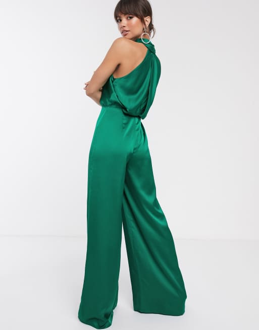 ASOS DESIGN glam plunge tie front jumpsuit in slinky in green Very well made.