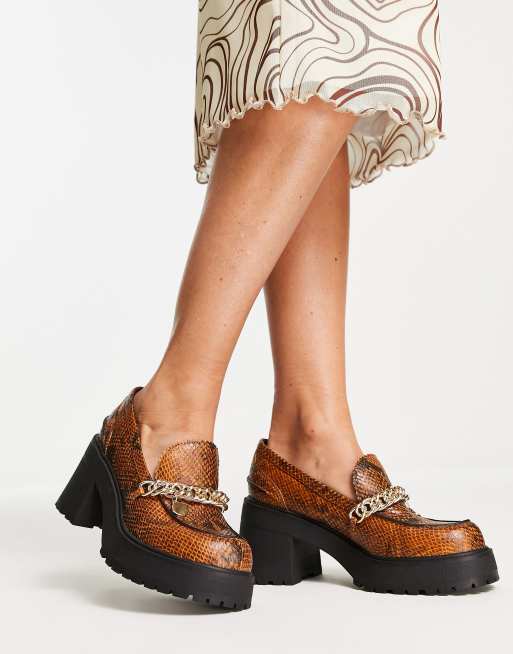 ASOS DESIGN Spicy chunky mid heeled loafers with chain in tan Very well made.