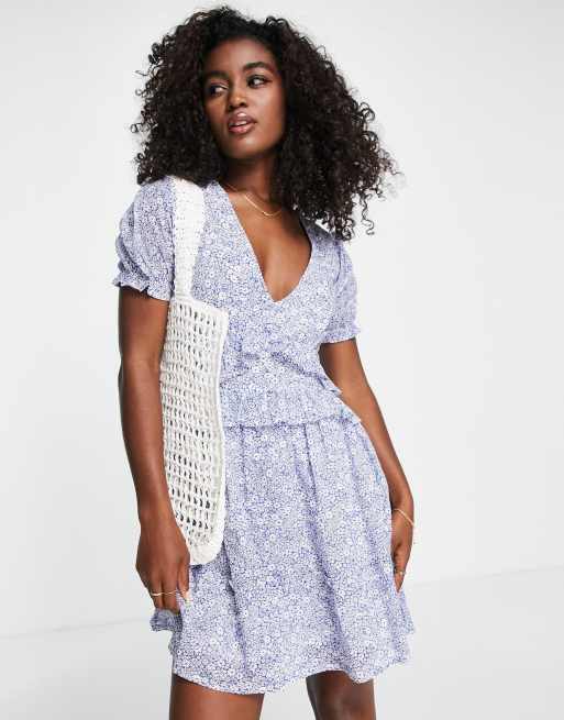 Influence frill detail mini dress in blue floral ASOS Very well made.