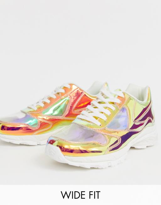 ASOS DESIGN Wide Fit trainers in iridescent with chunky sole Very well made.