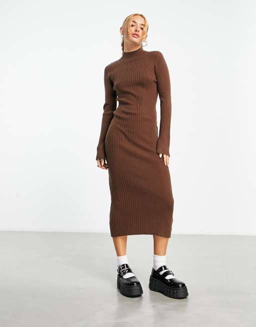 ASOS DESIGN high neck knitted midi dress in brown Very well made.