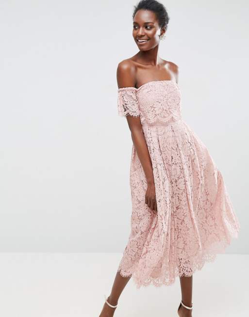 ASOS Off the Shoulder Lace Prom Midi Dress Very well made.