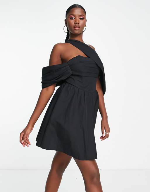 ASOS LUXE sweetheart neck dramatic cuff skater mini dress in black Very well made.