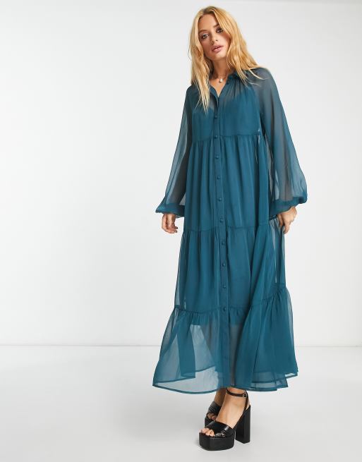 ASOS DESIGN tiered button through maxi shirt dress in teal Very well made.