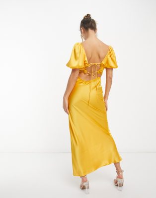 ASOS DESIGN satin milkmaid lace trim midaxi dress with strappy Very well made.