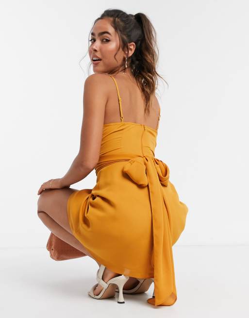 ASOS DESIGN cami wrap mini dress with tie waist in winter ochre Very well made.