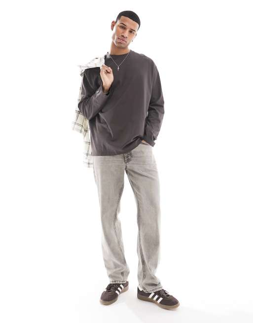 ASOS DESIGN long sleeve oversized fit t shirt with crew neck in dark brown Very well made.