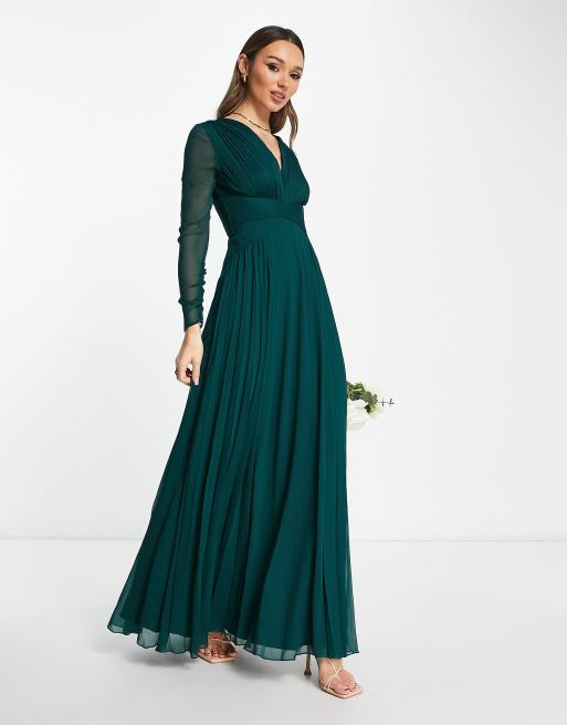 ASOS DESIGN Vestito lungo da damigella verde in velluto con corsetto e spalle scoperte Very well made.