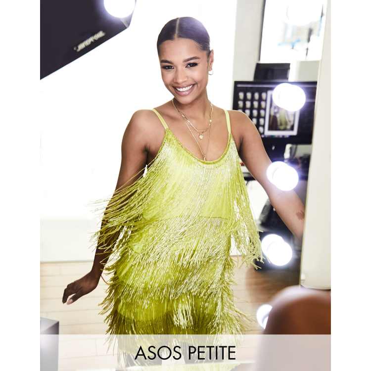 ASOS DESIGN Petite embellished fringed mini dress in yellow ASOS Very well made.