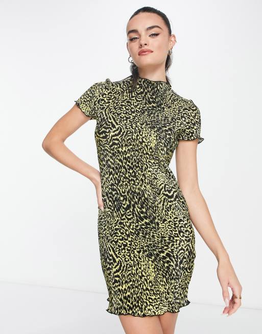 ASOS DESIGN plisse mini t shirt dress in yellow animal ASOS Very well made.