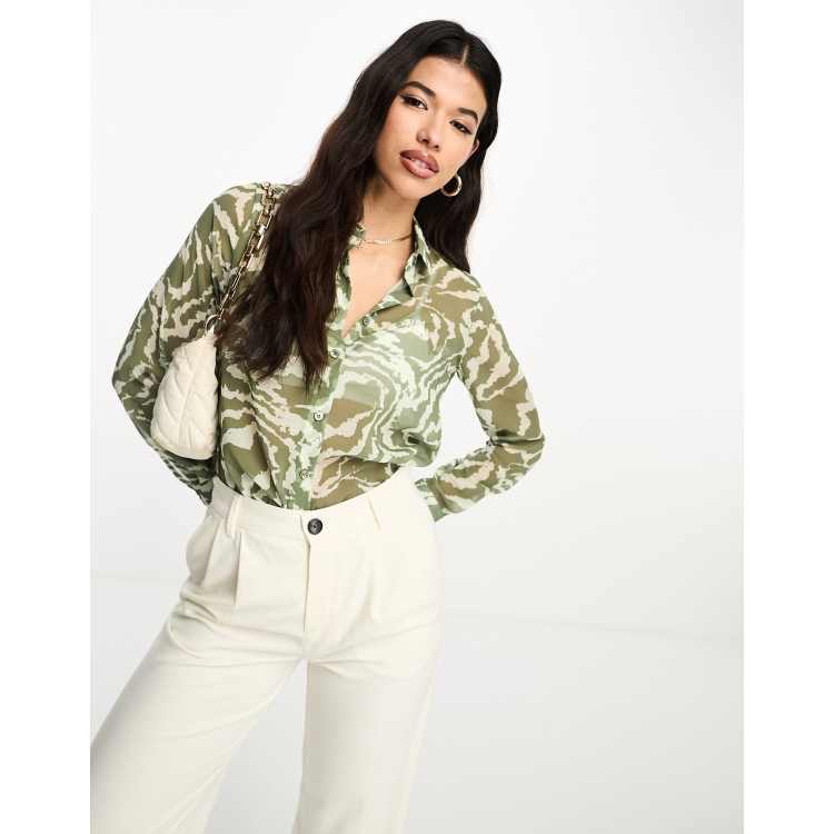 ASOS DESIGN long sleeve soft shirt in khaki zebra print Very well made.