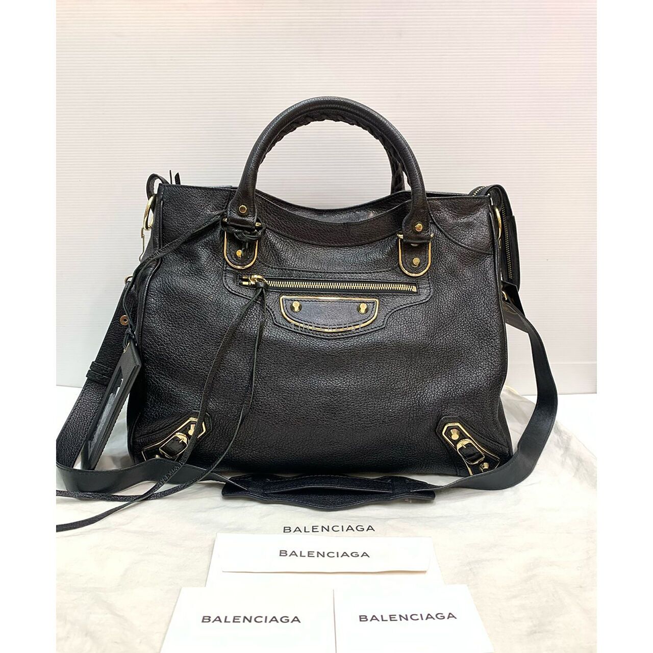 Authentic BALENCIAGA Chevre Gold Metallic Edge Hardware Velo Gris Taupe EUC Very well made.