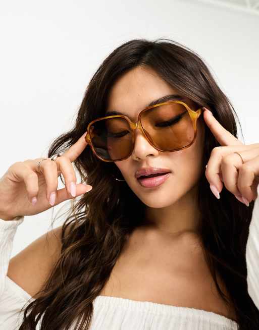 Oversized 70s Sunglasses Crystal Sepia Brown All About Audrey Very well made.