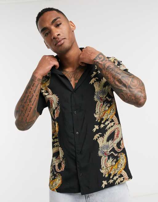 Bershka short sleeve dragon print shirt in black Very well made.